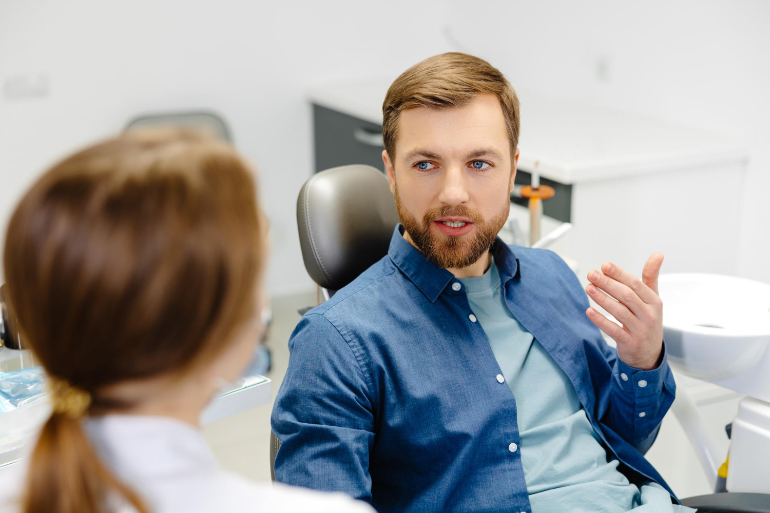 The dentist will ask you to sit in a special reclining chair – the kind that gently leans you backwards so they can see